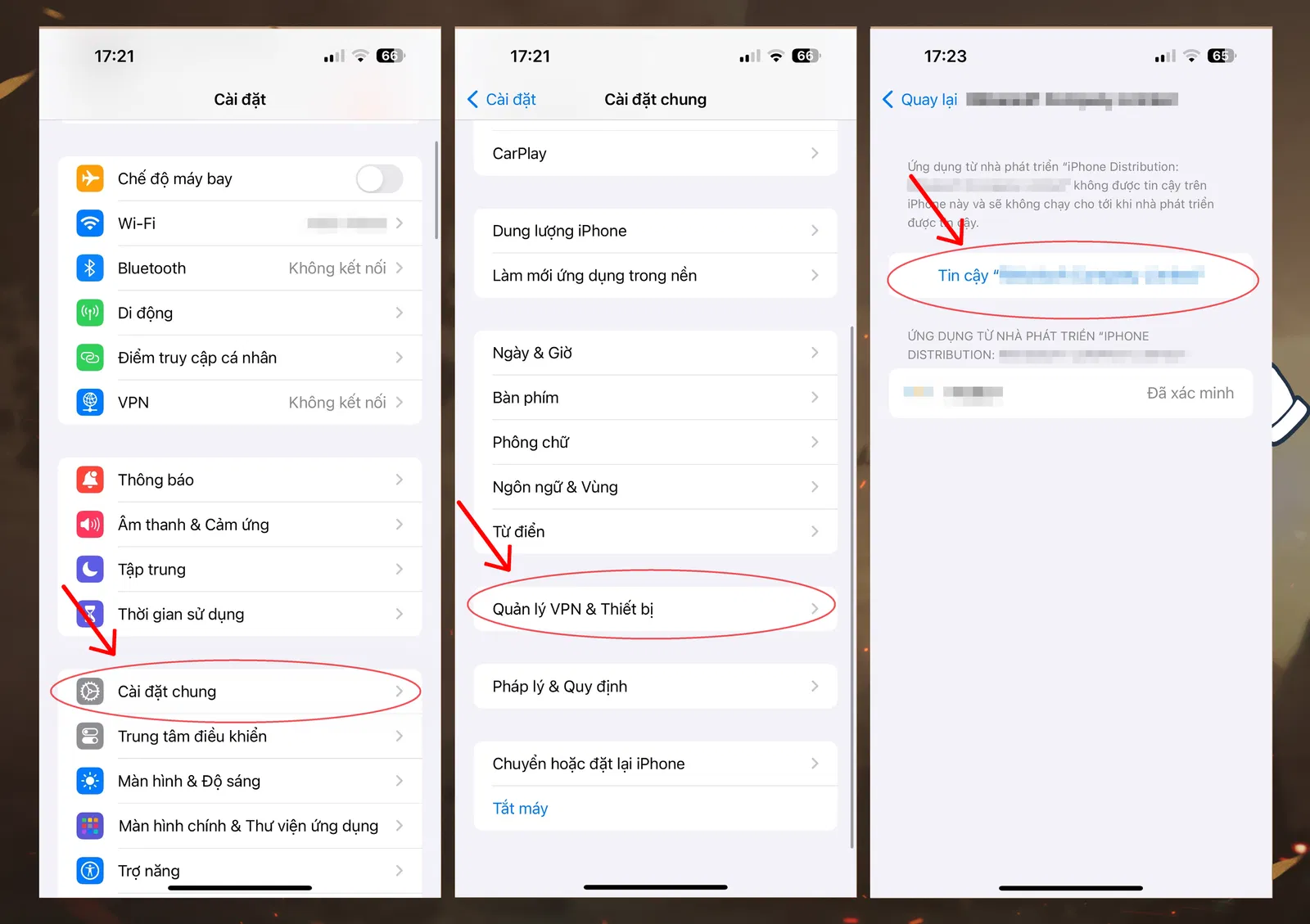 Cài đặt→ Cài đặt chung→ Quản lý thiết bị→ Tin cậy